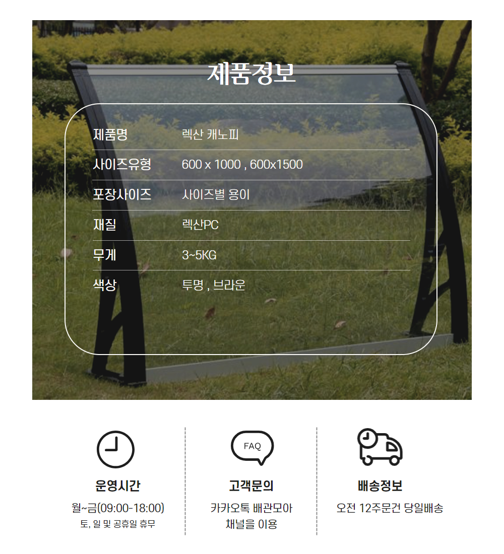 렉산 어닝 처마 테라스 차양막 빗물막이 600x1000 투명 1개