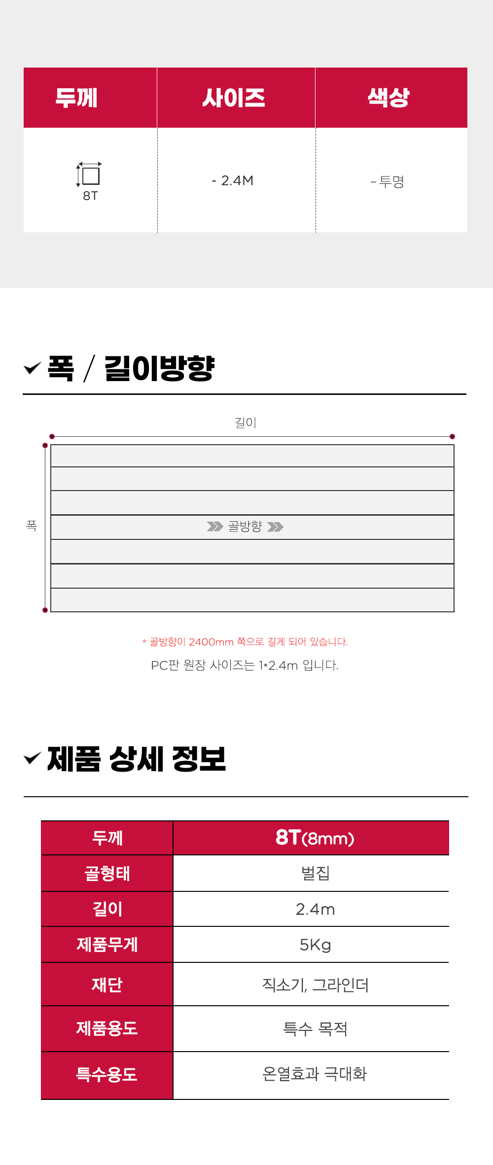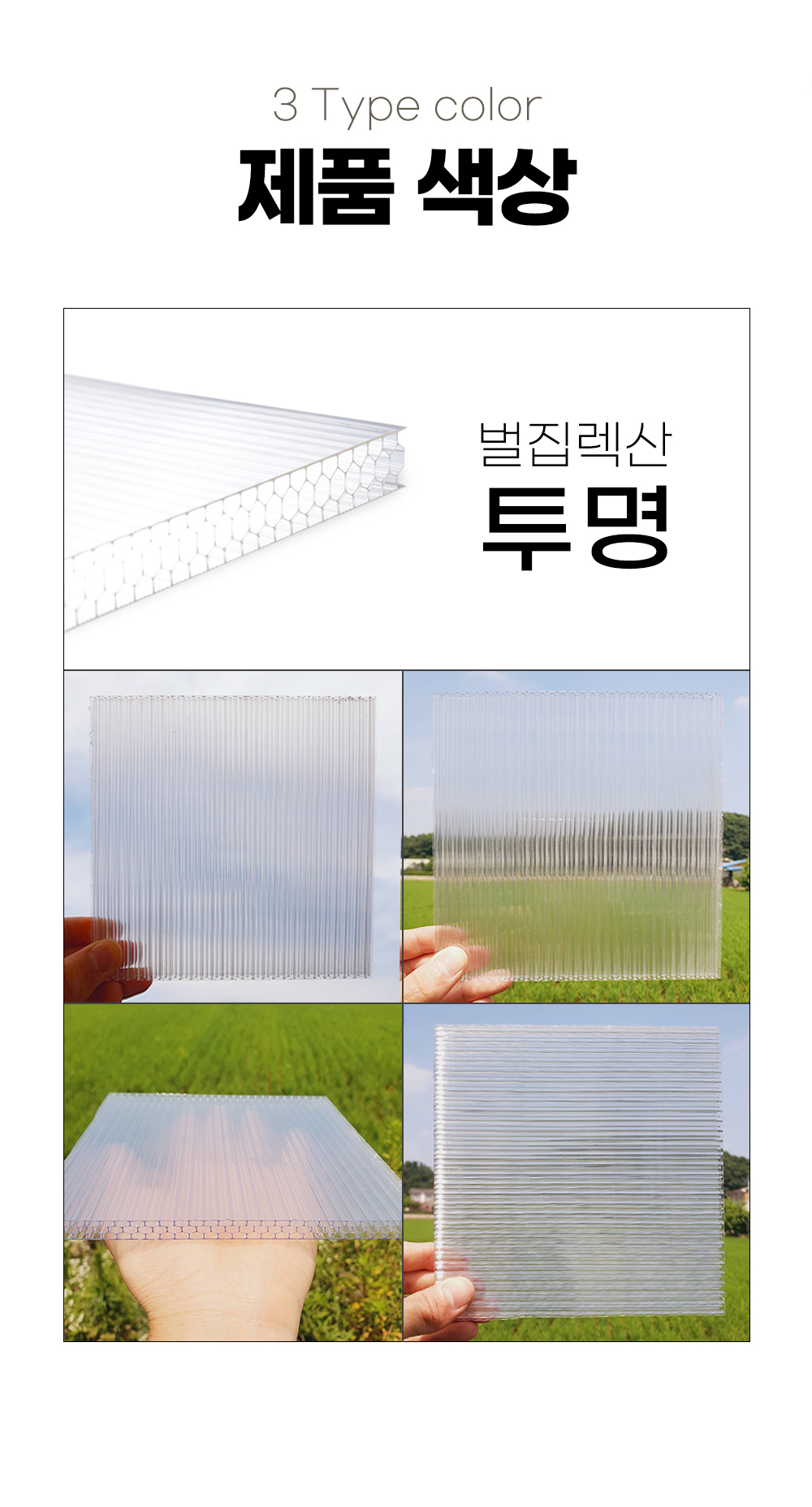 렉산 지붕 골판 폴리카보네이트 벌집판 8T 투명 1000x1000
