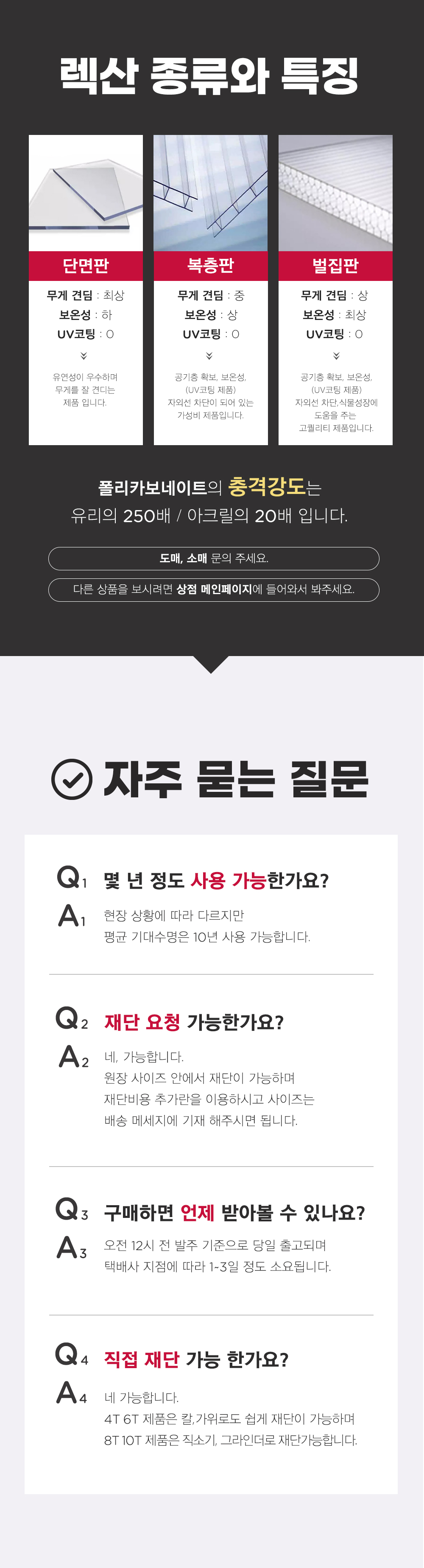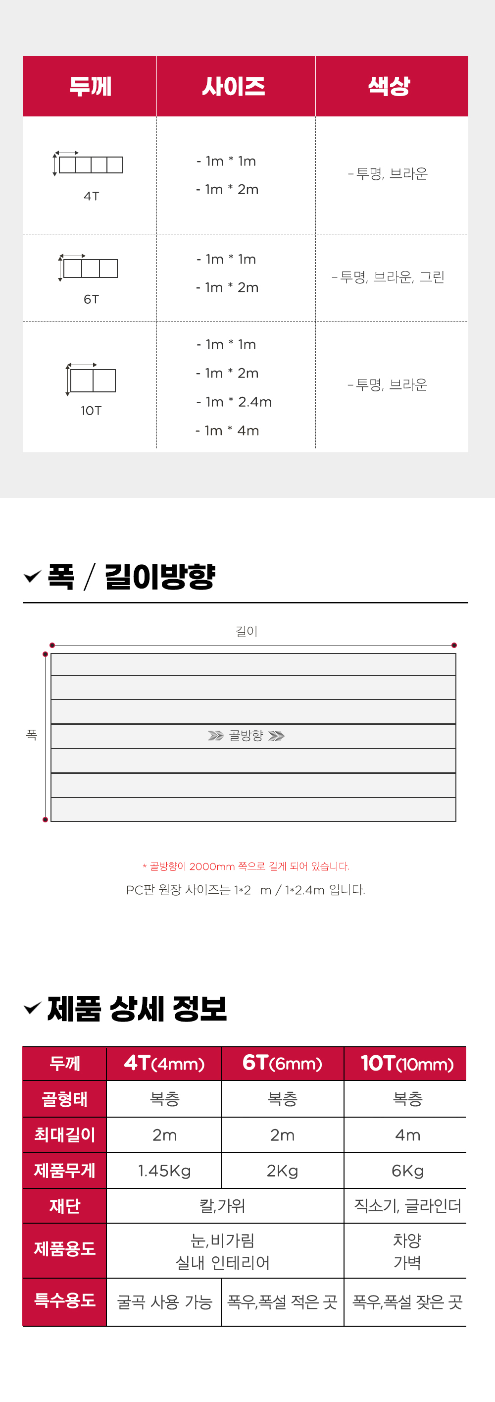 복층 렉산 폴리카보네이트 4T 6T 10T