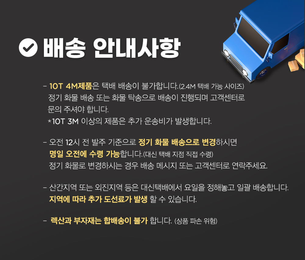 - 기본 배송기간 이상 소요되는 상품이거나, 품절 상품은 개별 연락을 드립니다.